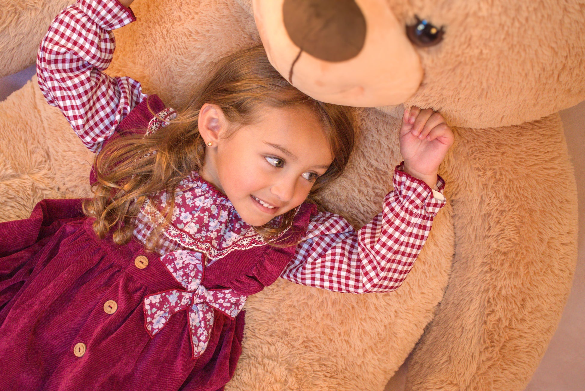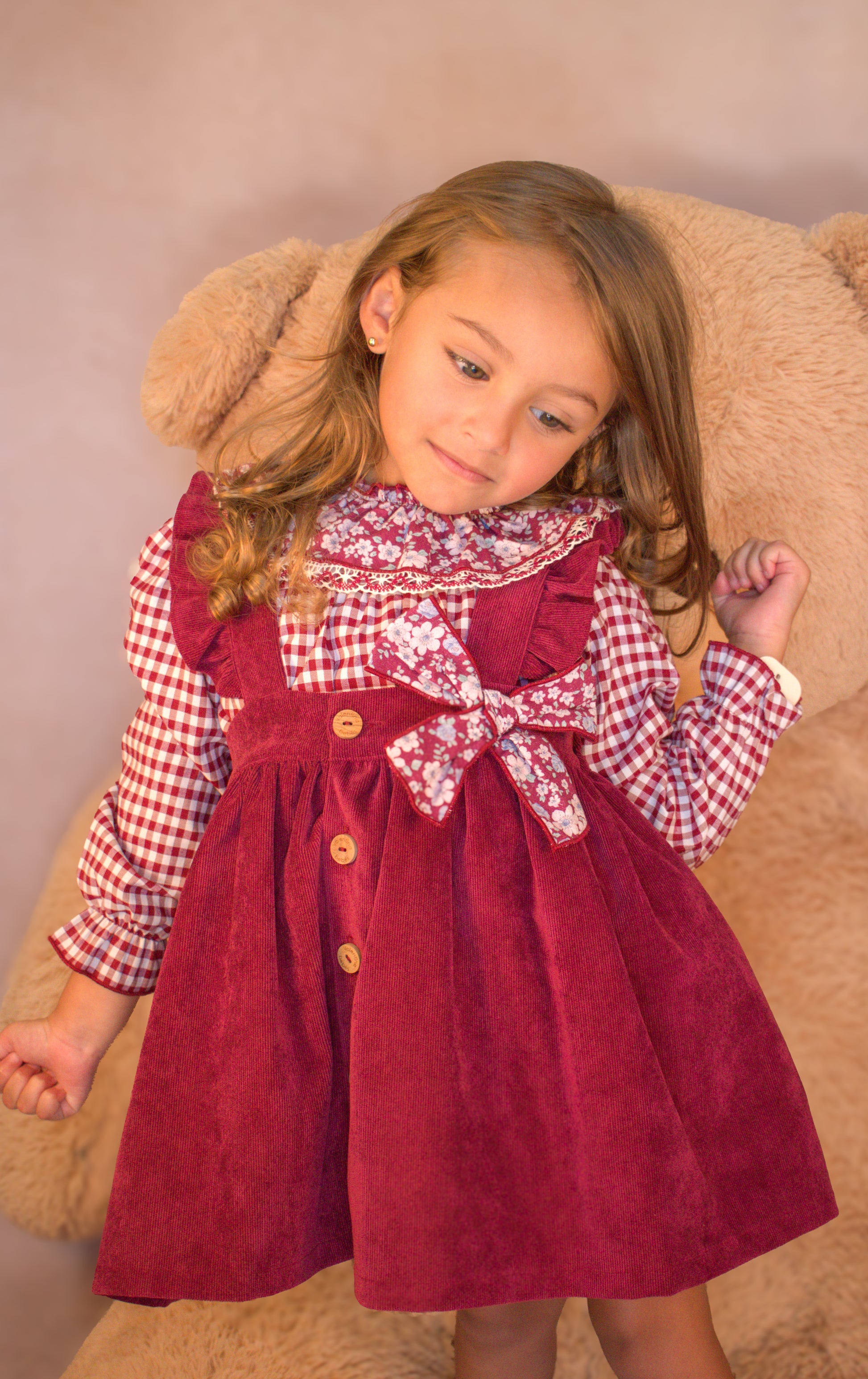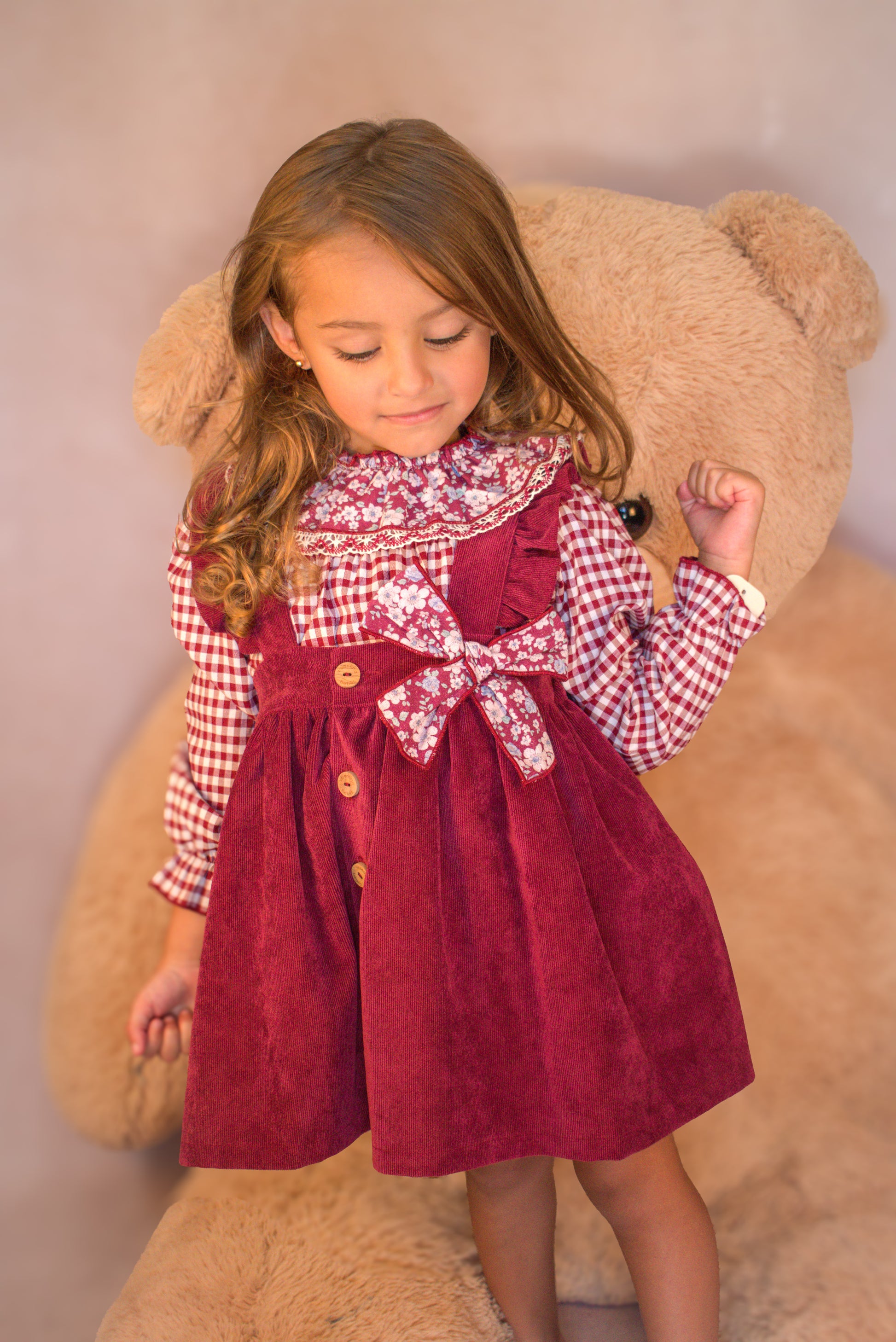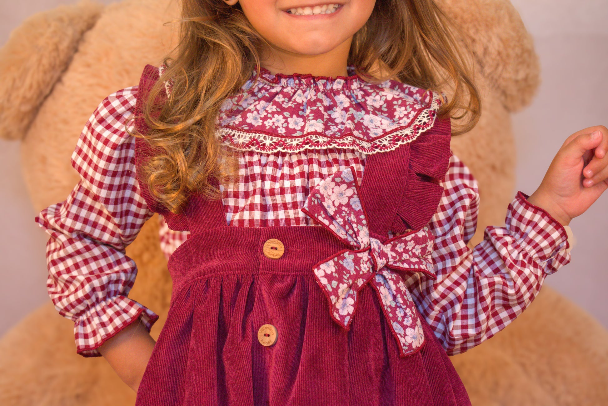 Finished with a statement floral bow at the waist, this set blends old-world charm with playful details! perfect for orchard outings, family photos, and crisp autumn days.