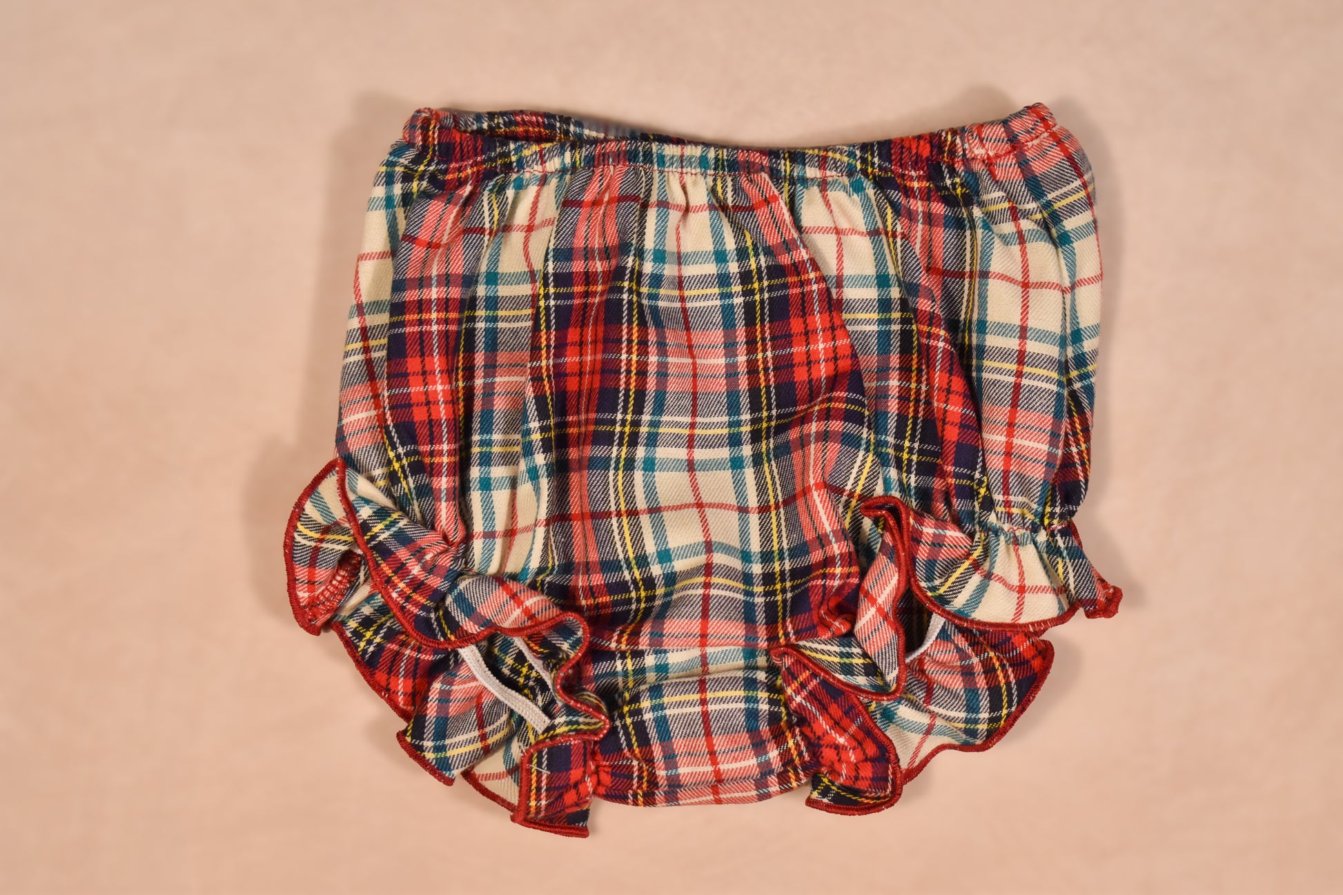 Matching bloomers complete the look with ruffled hems and elastic edges for comfort and ease—perfect for layering and playtime elegance.